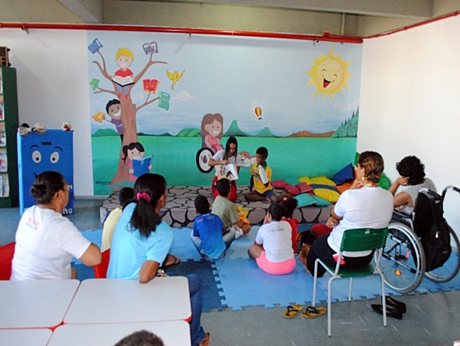 Após conhecerem a estrutura e serviços do local, nossos assistidos participaram de um momento interativo com contação de história, no espaço dedicado ao público infantil.