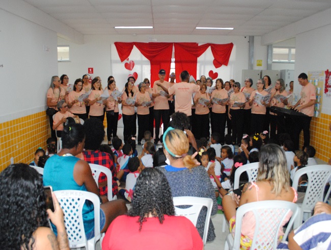 Na manhã desta sexta-feira (26), o Coral Avosos se apresentou na Escola Municipal de Educação Infantil Tia Ruth, situada no Bairro Santa Maria, zona sul de Aracaju. Os voluntários cantaram músicas para as crianças, profissionais e responsáveis.