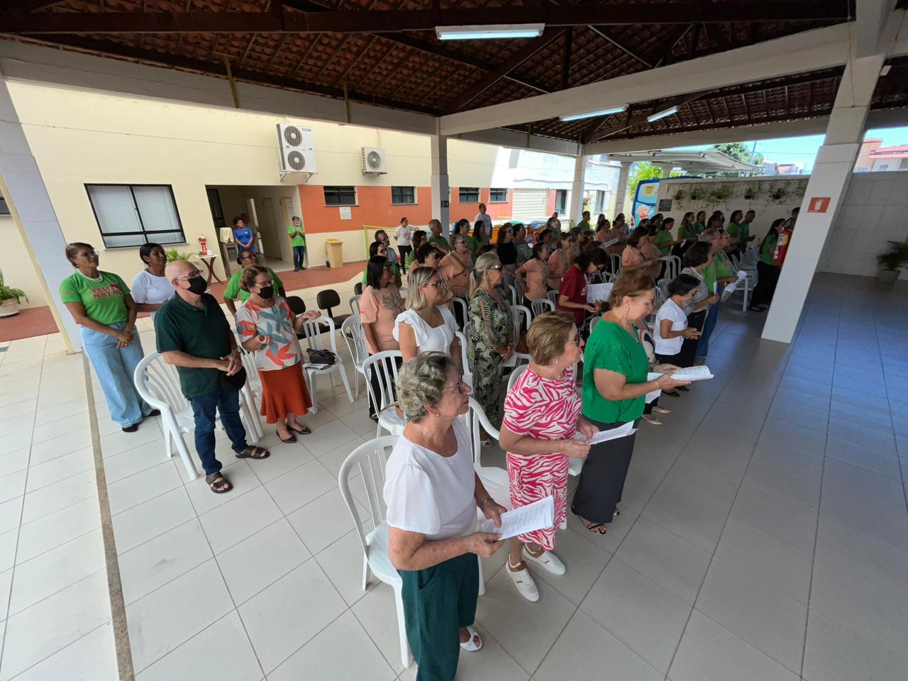 O momento de fé contou com a participação do fundador e presidente, Wilson Melo, da presidente de honra e coordenadora dos voluntários, Jeane Vieira Melo, de membros da diretoria, voluntários, funcionários e pacientes.