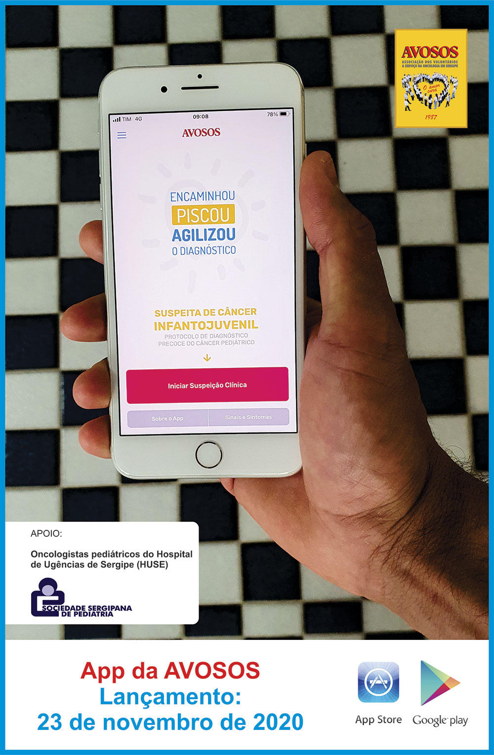 Segundo o fundador e presidente voluntário da AVOSOS, Wilson Melo, o câncer não espera, daí a importância da instituição lançar um aplicativo para agilizar os exames. “O APP da Avosos está disponível na Play Store e na Apple Store. Foi pensado de uma forma bem simples, de modo a fornecer as informações necessárias para o encaminhamento dos casos suspeitos para o Ambulatório de Triagem da Avosos. Foi idealizado para uso médico, mas também contém informações para o público em geral. O APP tem parceria com a Sociedade Sergipana de Pediatria e com os oncologistas pediátricos do Hospital de Urgências de Sergipe (HUSE)”, informa Wilson Melo.