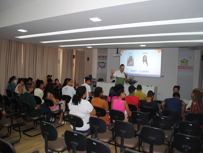 Assistidos e representantes participaram de duas capacitações. Na terça (16), a temática foi sobre relações interpessoais no mercado de trabalho. Na quarta (17), os participantes receberam informações sobre atendimento comercial