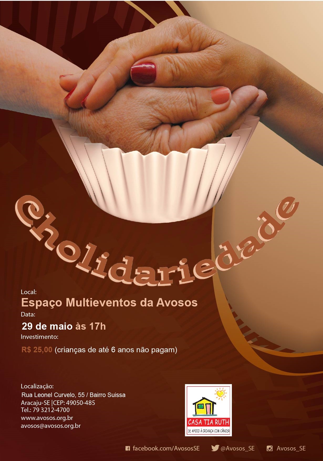 O convite para participar do Cholidariedade é R$ 25,00 (crianças até 6 anos não pagam) e já pode ser adquirido na sede da Avosos, que fica à rua Leonel Curvelo, nº 55, bairro Suíssa. Informações: (79) 3212-4700.