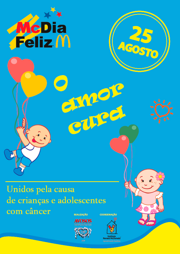 O Instituto Ronald McDonald é uma organização sem fins lucrativos cuja missão é promover a saúde e a qualidade de vida de adolescentes e crianças com câncer. Com 19 anos de atuação, a organização desenvolve e coordena Programas – Diagnóstico Precoce, Atenção Integral, Espaço da Família Ronald McDonald e Casa Ronald McDonald – que possibilitam o diagnóstico precoce, encaminhamento adequado e atendimento integral e de qualidade para os jovens pacientes e seus familiares. Há 30 anos, as chances de cura eram de apenas 15%. Hoje pode chegar a 80% se a doença for diagnosticada precocemente e tratada de maneira adequada. Informações: www.instituto-ronald.org.br.
