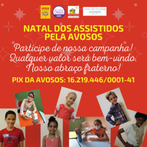 Participe da campanha natalina da AVOSOS! Qualquer valor será bem-vindo para fazer um Natal mais feliz para os nossos assistidos e acompanhantes.