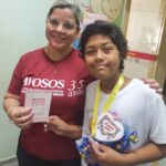 O jovem Kayky Gilberto Santana dos Santos (11), cadastrado na AVOSOS em junho de 2021 com leucemia, já completou todo seu Cartão e recebeu das mãos da presidente de Honra da AVOSOS, fundadora Jeane Vieira Melo, medalha, trofeu e um brinde especial. A pedagoga Jussara Cristina e a mãe de Kayky, Josefa Riso dos Santos, também participaram do momento.
