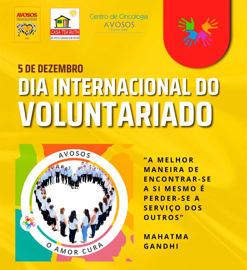 5 de dezembro: Dia Internacional do Voluntário. Ser voluntário é viver o amor em sua pura essência. É doar o melhor de si e, quando menos imagina, tornar-se o melhor para o mundo! Parabéns às voluntárias e aos voluntários da AVOSOS pelo carinho, amor e dedicação às crianças e adolescentes com câncer assistidos pela instituição, […]