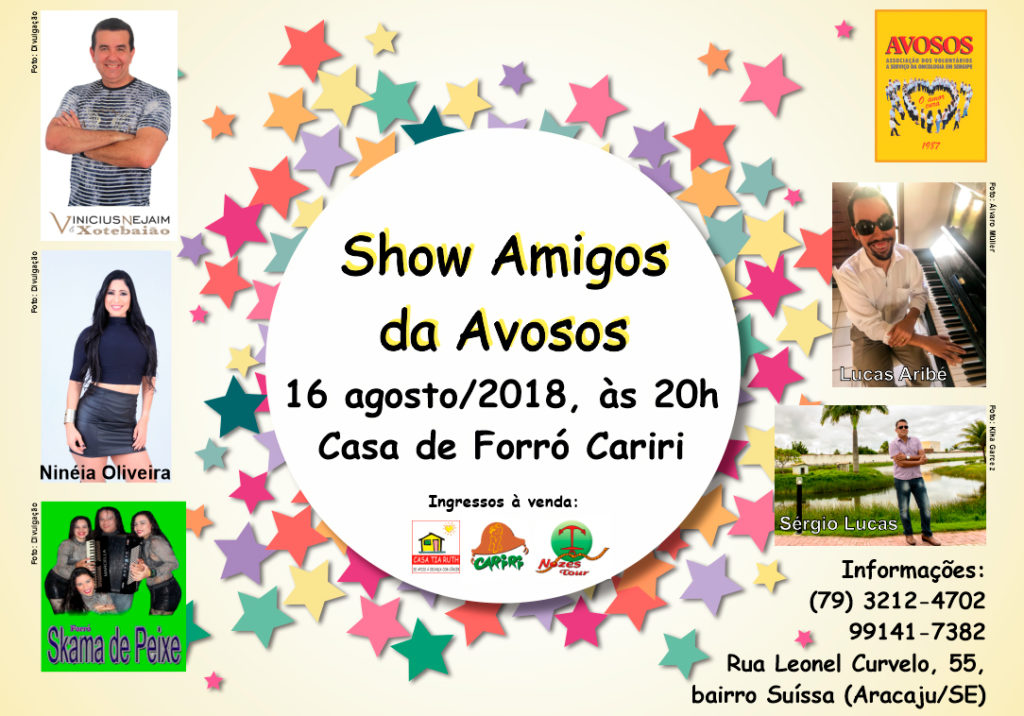 A Associação dos Voluntários a Serviço da Oncologia em Sergipe (Avosos) informa que foi adiado, por tempo indeterminado, a 2ª edição do Show Amigos da Avosos. O motivo do adiamento se deve ao fato de a fundadora da instituição, Maria Ruth Wynne Cardoso (Tia Ruth), ter tido um comprometimento maior em seu grave estado de […]