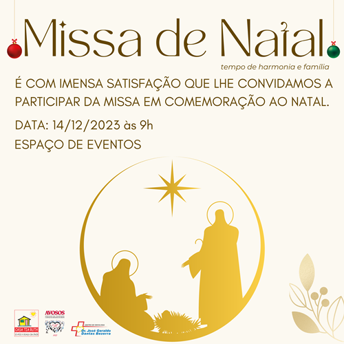 O nascimento do menino Jesus vai ser celebrado através de uma missa, no Espaço Multieventos Fundadora Jeane Vieira Melo. A cerimônia vai ser realizada na data de 14/12, a partir das 9h.