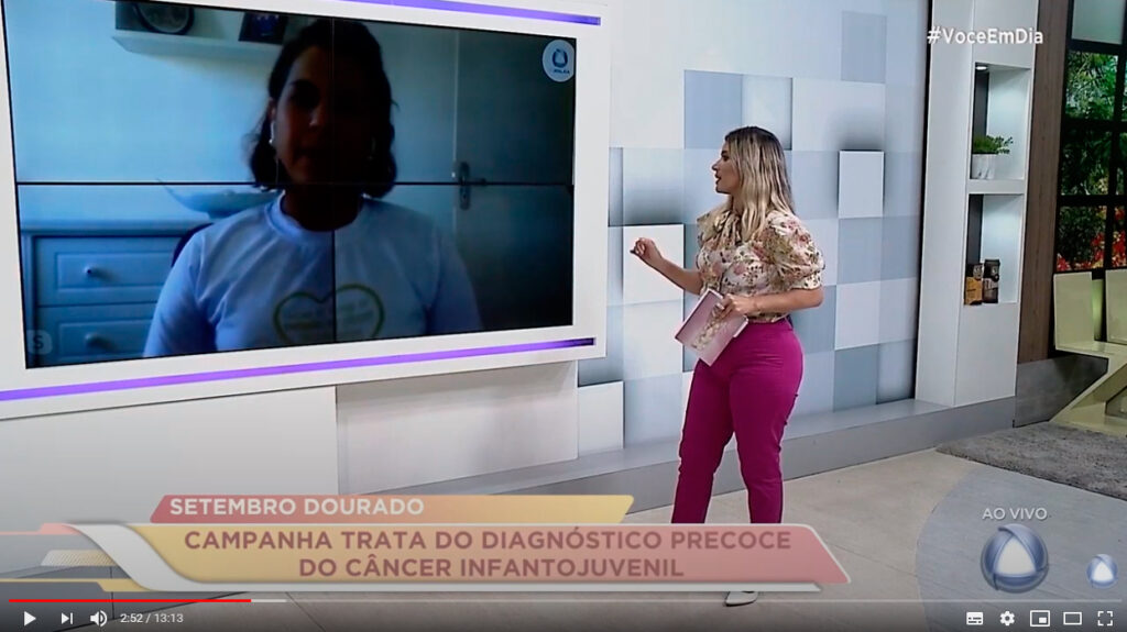 Setembro Dourado: Campanha trata do diagnóstico precoce do câncer infantojuvenil. Programa ´Você em Dia´, da TV Atalaia, destaca a campanha.