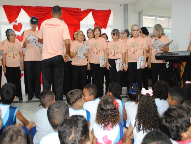 Na manhã desta sexta-feira (26), o Coral Avosos se apresentou na Escola Municipal de Educação Infantil Tia Ruth, situada no Bairro Santa Maria, zona sul de Aracaju. Os voluntários cantaram músicas para as crianças, profissionais e responsáveis.