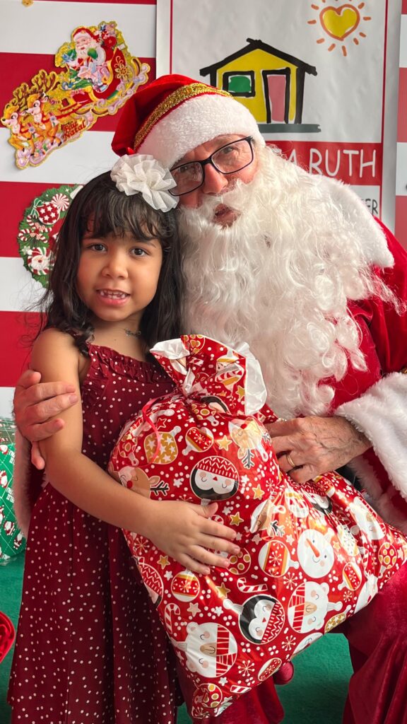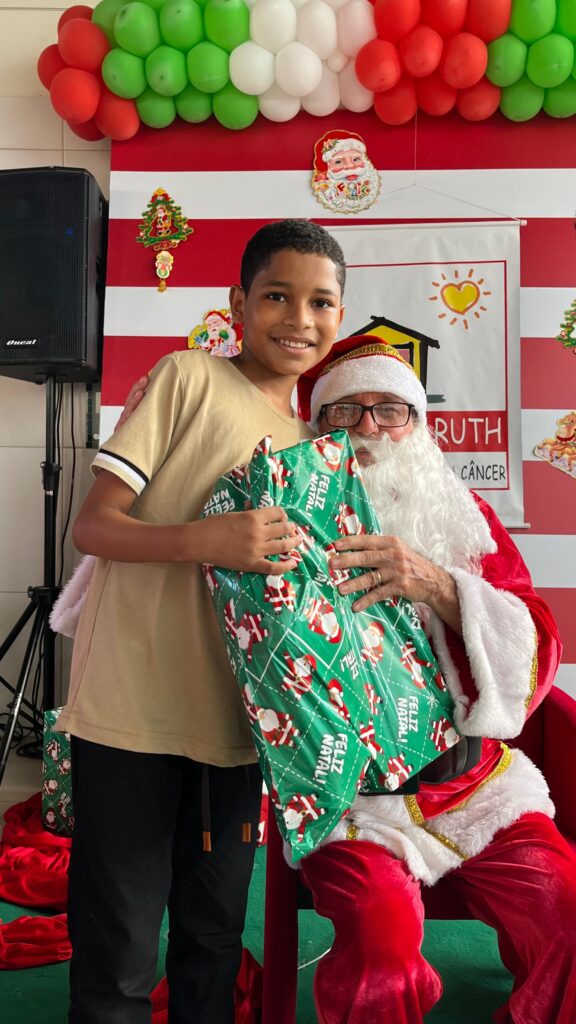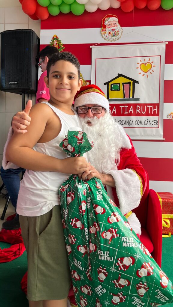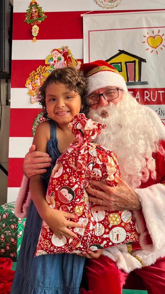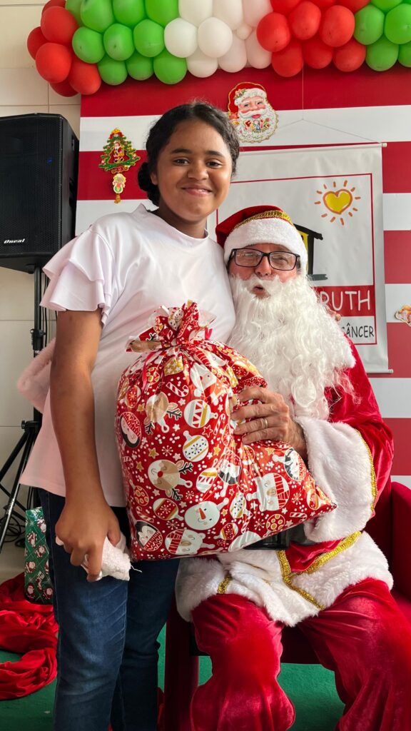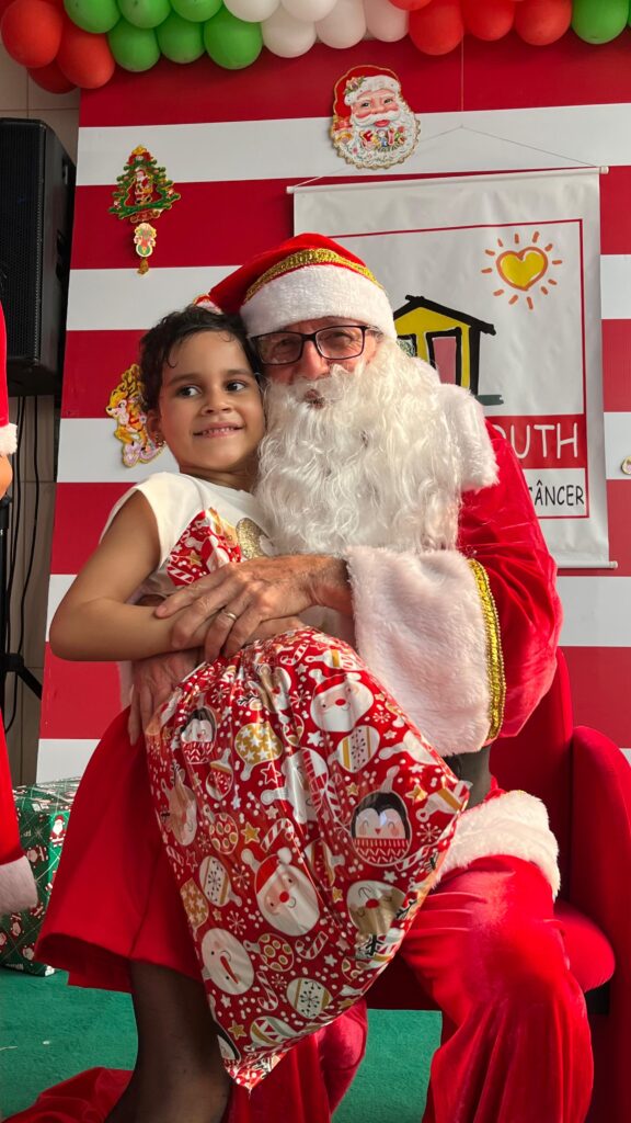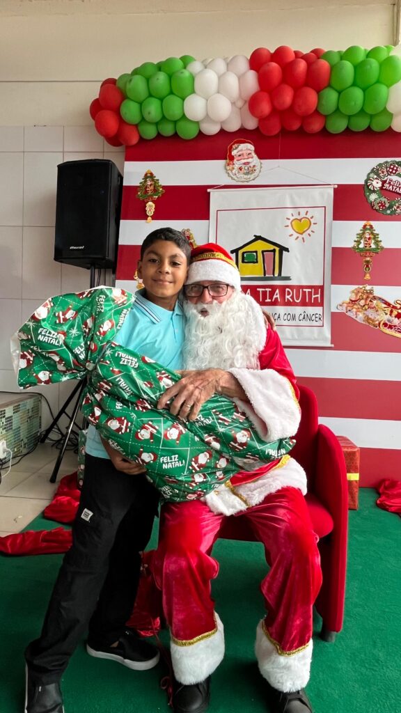 Com cores, luzes e clima de confraternização, assistidos pela Casa Tia Ruth de Apoio à Criança com Câncer/Avosos e familiares, celebram o Natal e os aniversariantes dos meses de novembro e dezembro.