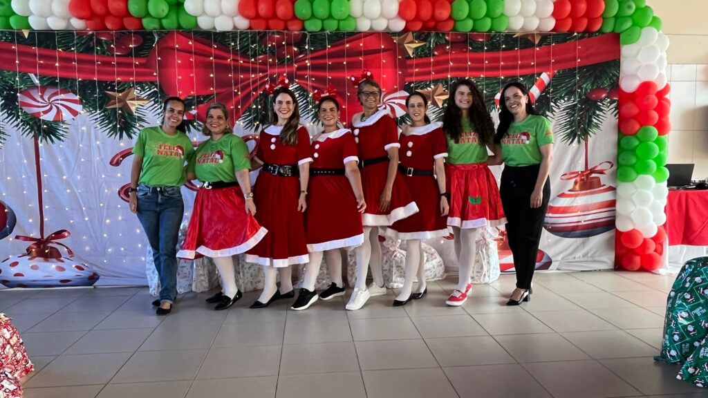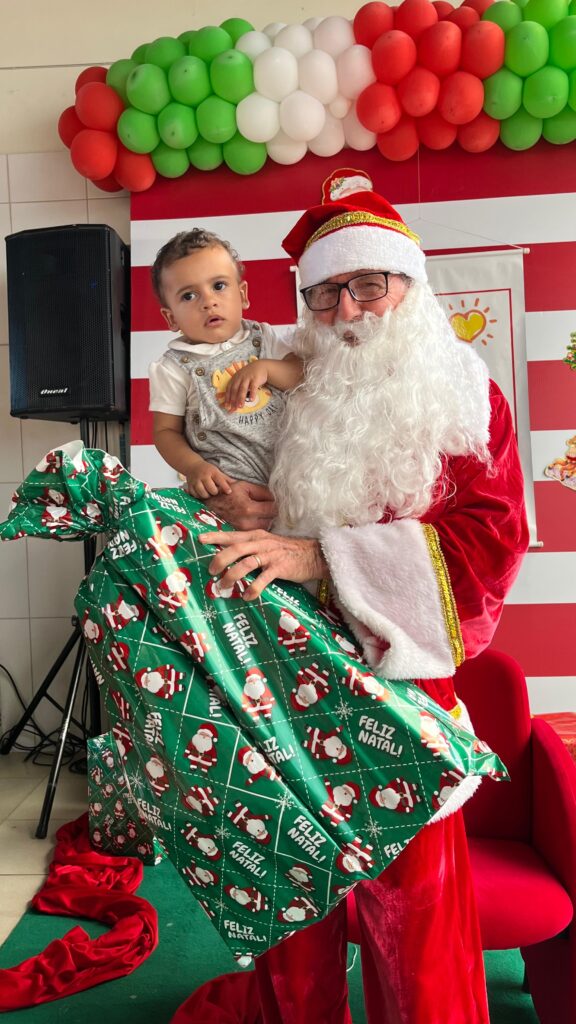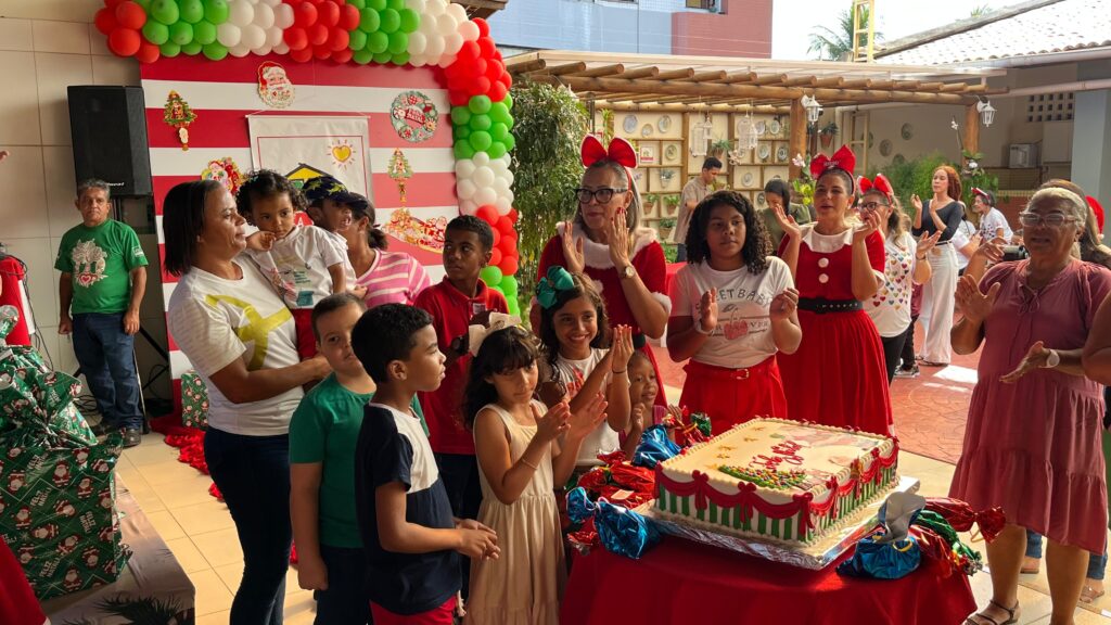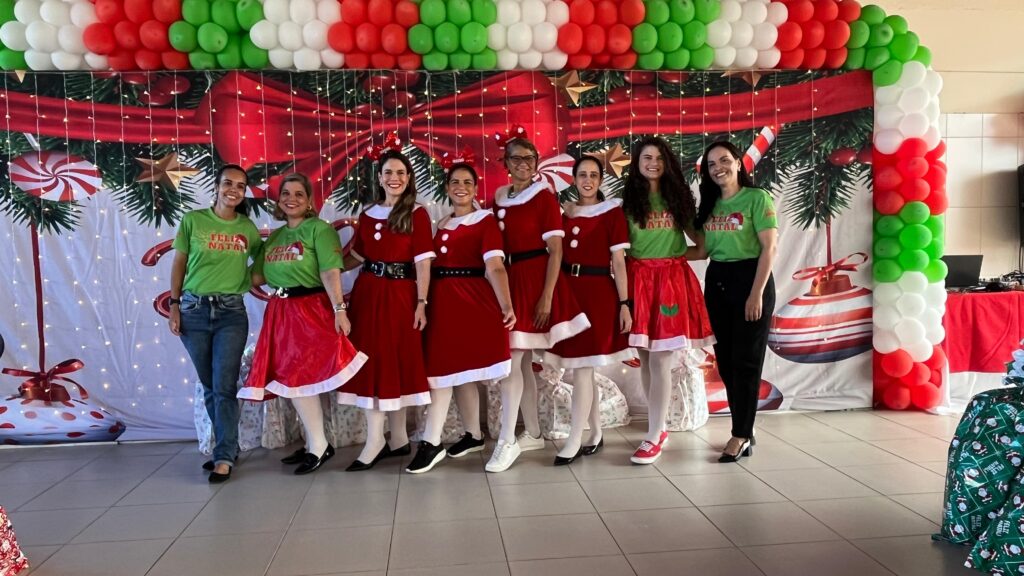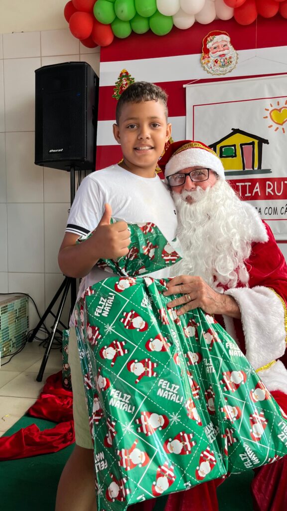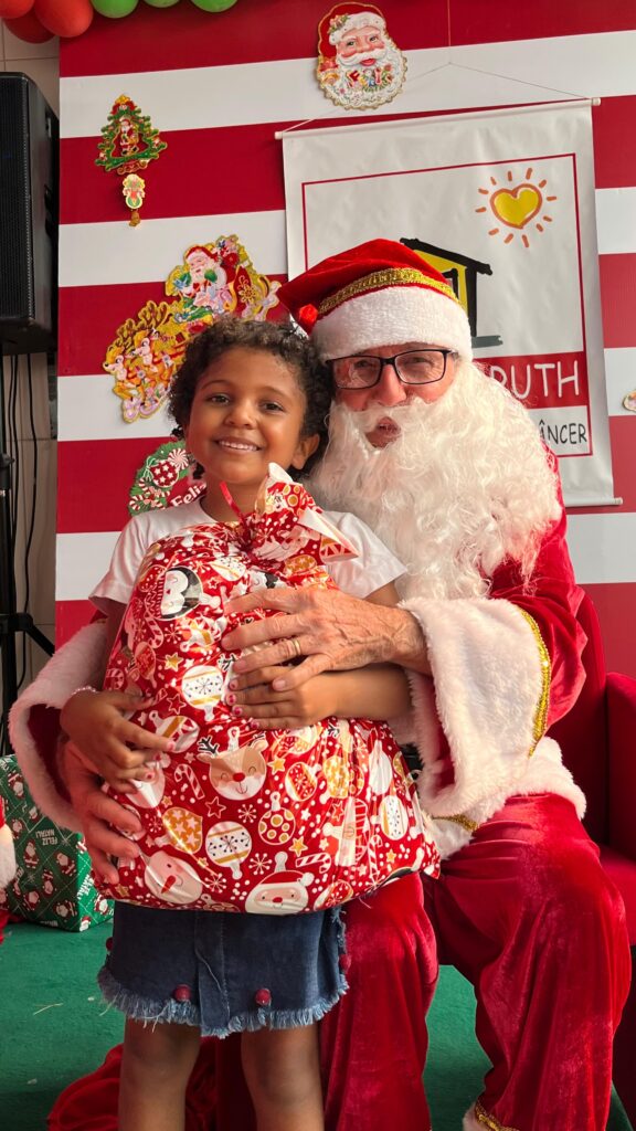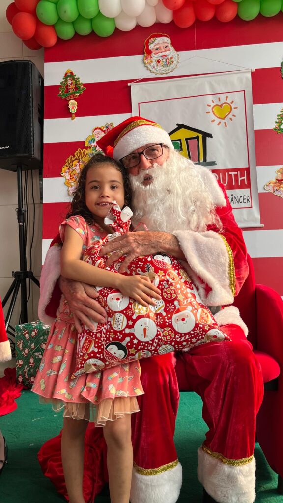 Com cores, luzes e clima de confraternização, assistidos pela Casa Tia Ruth de Apoio à Criança com Câncer/Avosos e familiares, celebram o Natal e os aniversariantes dos meses de novembro e dezembro.