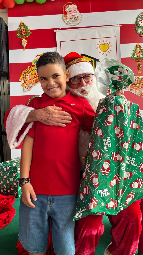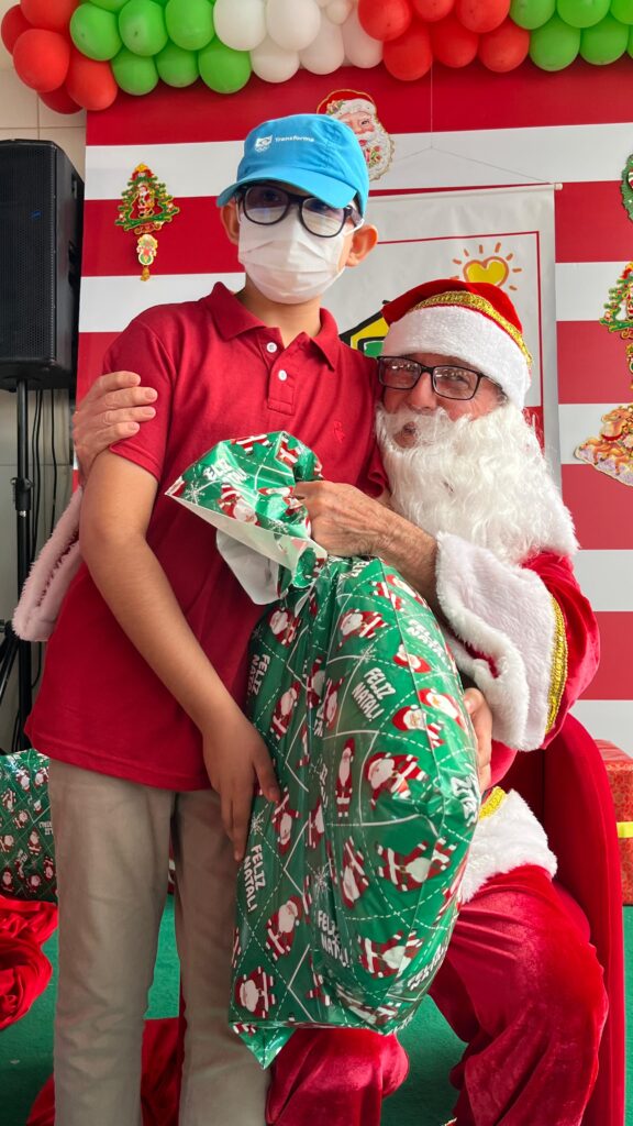A festa foi realizada no espaço multieventos e reuniu voluntários e colaboradores. A hora mais aguardada pelos assistidos foi a chegada do Papai Noel. Eles registraram o momento, receberam a lembrança e celebraram a finalização de mais um ano de atividades.