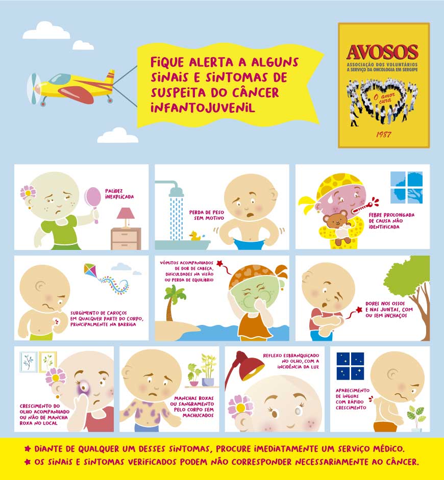 O presidente da Avosos, voluntário Wilson Melo, que tem acompanhado de perto há 34 anos diversas histórias de crianças e adolescentes com câncer, ressalta que um dos grandes desafios para o diagnóstico precoce é a identificação dos sintomas, que se confundem com os de outras doenças. “Os pais, avós, tios, professores, enfim, cuidadores de crianças e adolescentes precisam ficar alertas e observar alguns desses sintomas de suspeita. Na dúvida, é importante ainda consultar sempre uma segunda opinião médica. Quem precisar de ajuda, orientação, apoio, pode procurar a Avosos, pois esta é a nossa missão”, pontua o fundador da instituição.